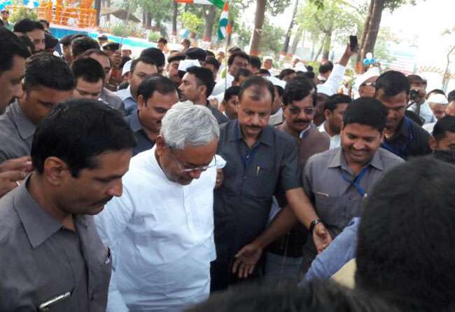मुख्यमंत्री नीतीश कुमार ने आज सुबह चंद्रहिया से मोतिहारी तक की आठ किलोमीटर की गांधी स्मृति पदयात्रा की। उनके साथ उपमुख्यमंत्री तेजस्वी यादव और गणमान्य लोग भी शामिल थे।